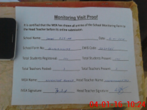 | Attendance Register | Head Teacher | MEA with School | Visit Proof |