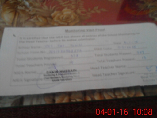 | Certified that this School was Inspected by the Undersigned MEA/DMO Today and the Information Stated Above is as Per Record. | |||||