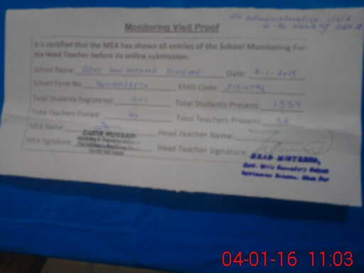 | Certified that this School was Inspected by the Undersigned MEA/DMO Today and the Information Stated Above is as Per Record. | |||||
