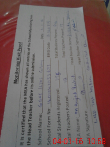 | Certified that this School was Inspected by the Undersigned MEA/DMO Today and the Information Stated Above is as Per Record. | |||||
