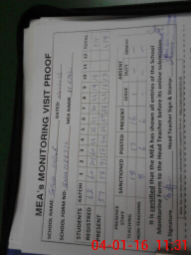 | Attendance Register | Head Teacher | MEA with School | Visit Proof |