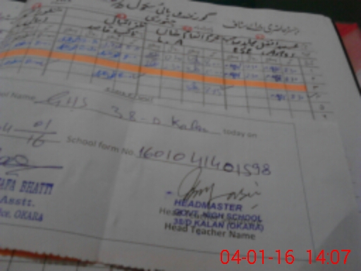 | Name: Fa**** UlHa**** Designation: (School Headmaster's/Headmistress's) HEADMASTER Phone/Cell Number: 03**** |