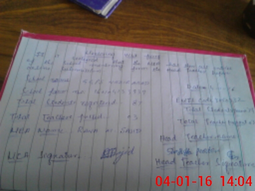 | Attendance Register | Head Teacher | MEA with School | Visit Proof |