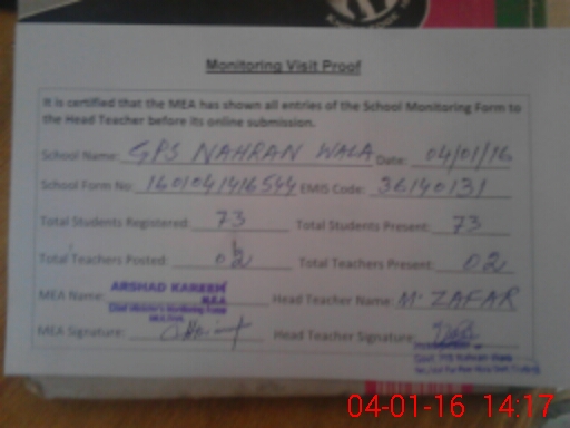 | EMIS Code: 36140131 | Name of School: GPS NAHRAN WALA P/O BAIT KACH | |||