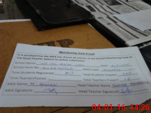 | Attendance Register | Head Teacher | MEA with School | Visit Proof |