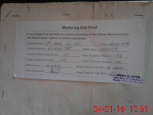 | Attendance Register | Head Teacher | MEA with School | Visit Proof |