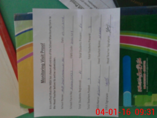 | Attendance Register | Head Teacher | MEA with School | Visit Proof |