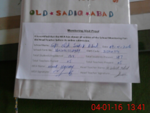 | EMIS Code: 31340114 | Name of School: GPS OLD SADIQABAD | |||