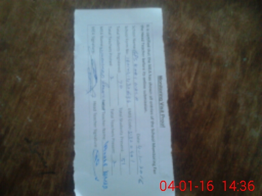 | Monitoring Date: 04-01-2016 | Start Time: 04-01-2016 02:19 PM | End Time: 04-01-2016 02:36 PM | Name of MEA: Mu**** Sa**** Ul**** Sa**** | |