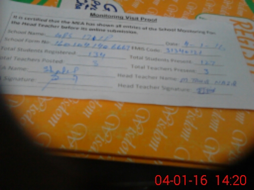 | Attendance Register | Head Teacher | MEA with School | Visit Proof |