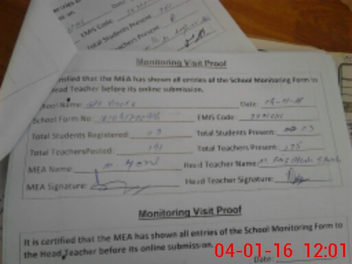 | Attendance Register | Head Teacher | MEA with School | Visit Proof |