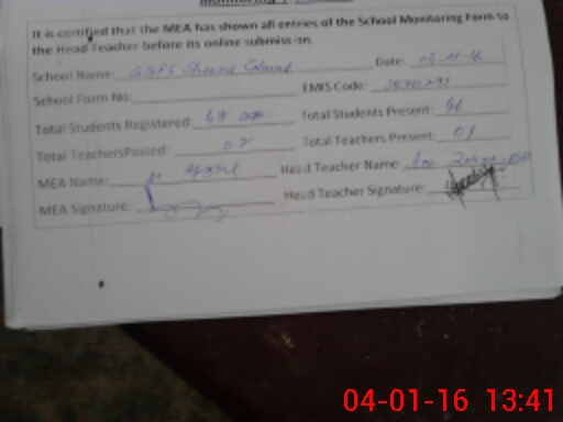 | Certified that this School was Inspected by the Undersigned MEA/DMO Today and the Information Stated Above is as Per Record. | |||||