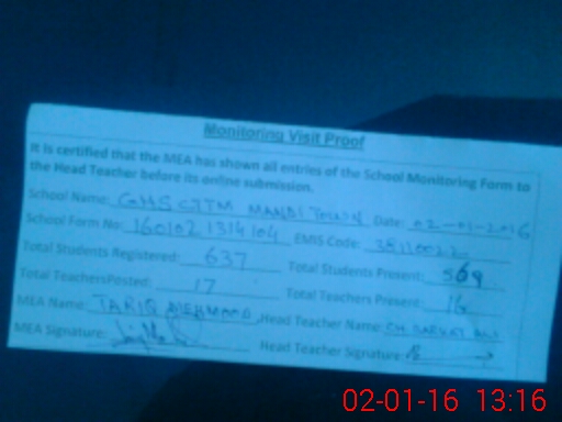 | Name: Ma**** Mu**** Au**** Designation: (School Headmaster's/Headmistress's) Sr Headmaster Phone/Cell Number: 03**** |