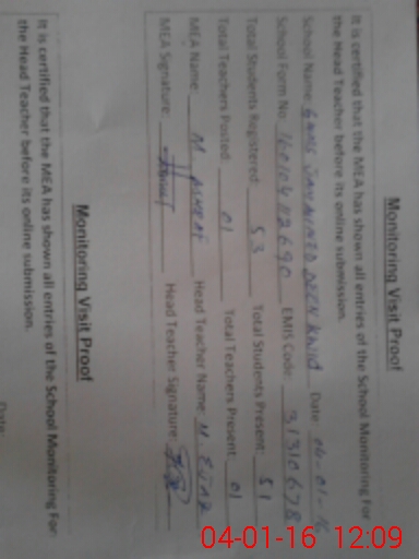 | Certified that this School was Inspected by the Undersigned MEA/DMO Today and the Information Stated Above is as Per Record. | |||||