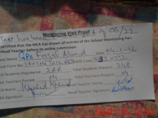 | EMIS Code: 31320332 | Name of School: GPS FAZAL ABAD | |||