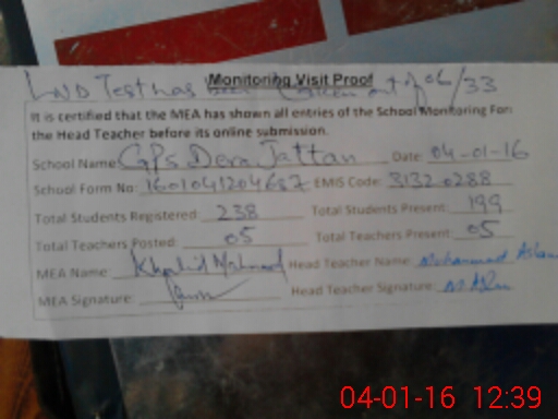 | EMIS Code: 31320288 | Name of School: GPS DERA JATTAN | |||