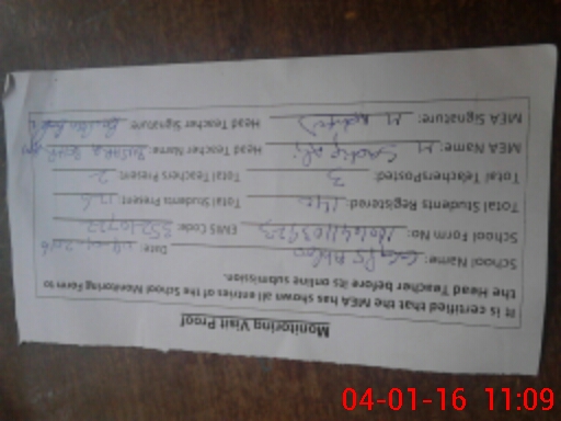| Attendance Register | Head Teacher | MEA with School | Visit Proof |