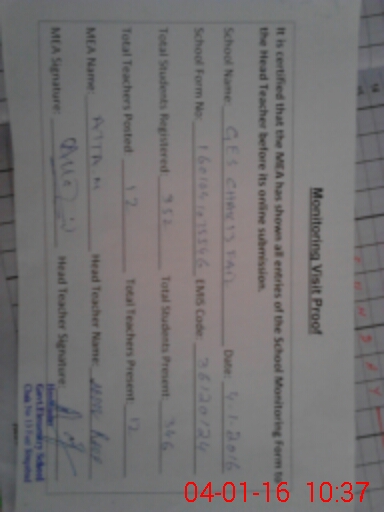 | Certified that this School was Inspected by the Undersigned MEA/DMO Today and the Information Stated Above is as Per Record. | |||||