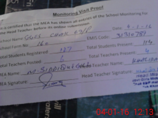 | Attendance Register | Head Teacher | MEA with School | Visit Proof |
