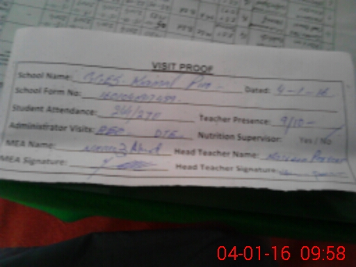 | Attendance Register | Head Teacher | MEA with School | Visit Proof |