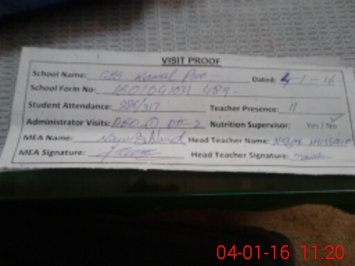 | Attendance Register | Head Teacher | MEA with School | Visit Proof |