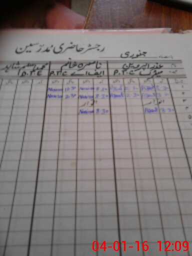 | CNIC | Full Name | Designation | R/C | Absence During Last Calender Month |