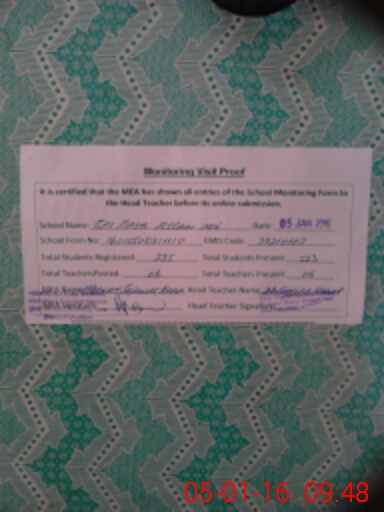 | Certified that this School was Inspected by the Undersigned MEA/DMO Today and the Information Stated Above is as Per Record. | |||||