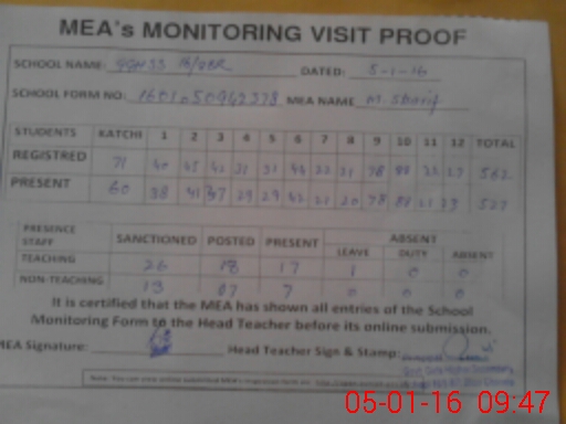 | Attendance Register | Head Teacher | MEA with School | Visit Proof |