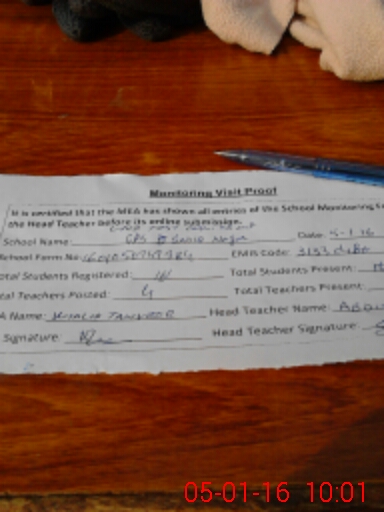 | Attendance Register | Head Teacher | MEA with School | Visit Proof |