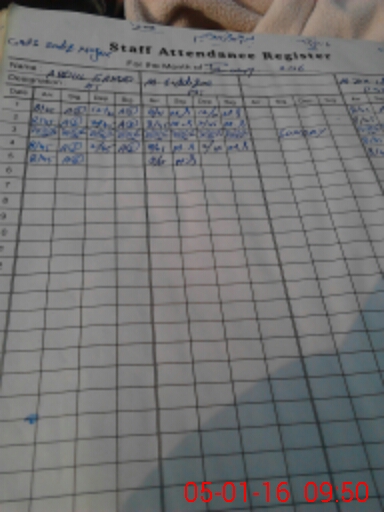 | CNIC | Full Name | Designation | R/C | Absence During Last Calender Month |