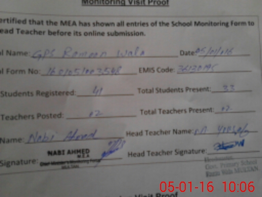 | Certified that this School was Inspected by the Undersigned MEA/DMO Today and the Information Stated Above is as Per Record. | |||||