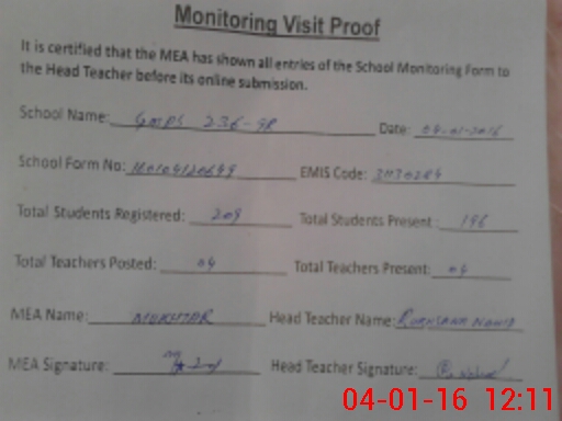 | EMIS Code: 31130284 | Name of School: GMPS CHAK NO. 236/9-R | |||