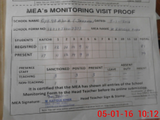 | Attendance Register | Head Teacher | MEA with School | Visit Proof |