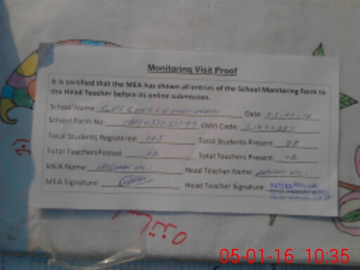 | Attendance Register | Head Teacher | MEA with School | Visit Proof |