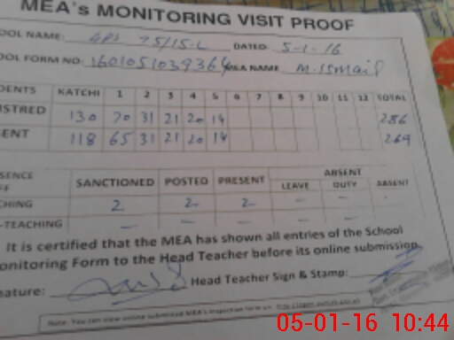 | Certified that this School was Inspected by the Undersigned MEA/DMO Today and the Information Stated Above is as Per Record. | |||||