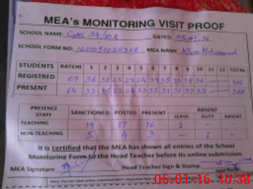 | Attendance Register | Head Teacher | MEA with School | Visit Proof |