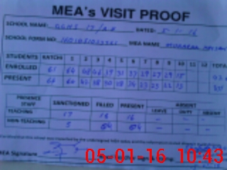 | Attendance Register | Head Teacher | MEA with School | Visit Proof |