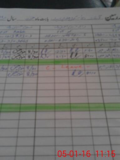 | CNIC | Full Name | Designation | R/C | Absence During Last Calender Month |