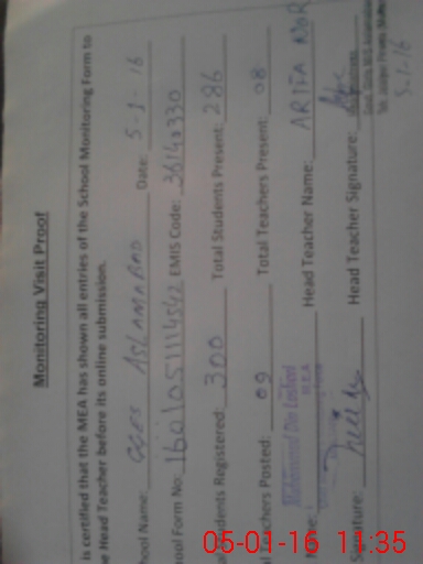 | Certified that this School was Inspected by the Undersigned MEA/DMO Today and the Information Stated Above is as Per Record. | |||||