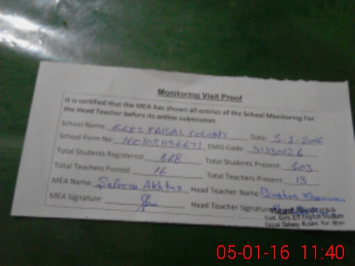 | EMIS Code: 31330126 | Name of School: GGES FAISAL COLONY | |||