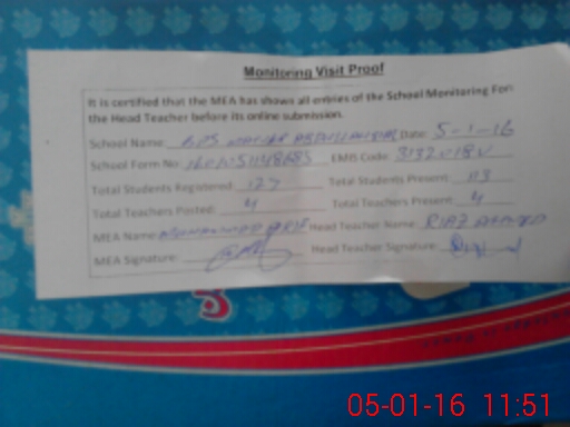 | Certified that this School was Inspected by the Undersigned MEA/DMO Today and the Information Stated Above is as Per Record. | |||||