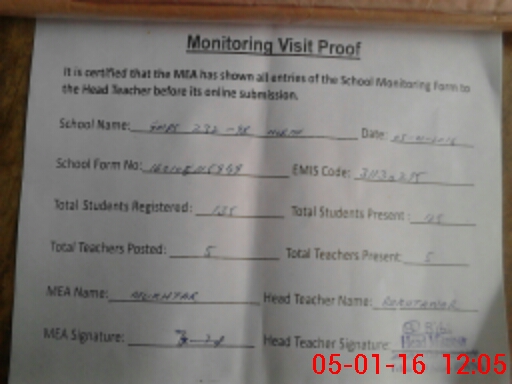 | Certified that this School was Inspected by the Undersigned MEA/DMO Today and the Information Stated Above is as Per Record. | |||||