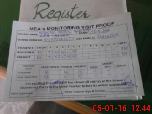 | Attendance Register | Head Teacher | MEA with School | Visit Proof |