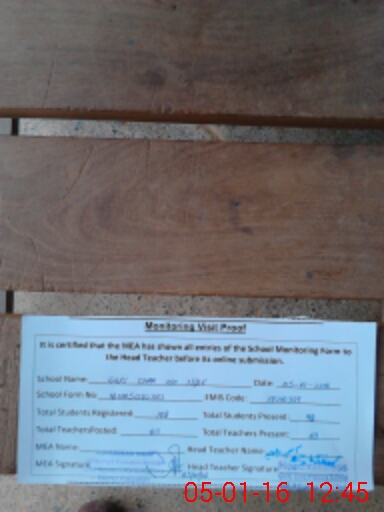 | Attendance Register | Head Teacher | MEA with School | Visit Proof |