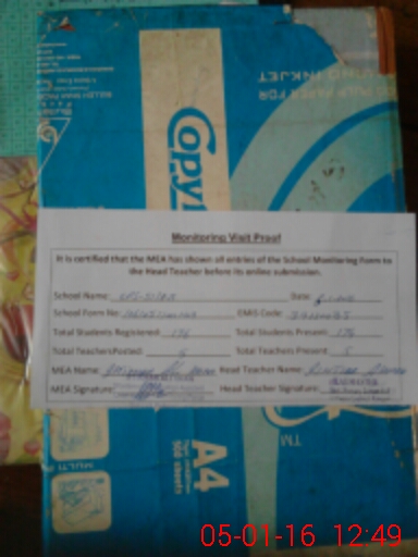 | Certified that this School was Inspected by the Undersigned MEA/DMO Today and the Information Stated Above is as Per Record. | |||||