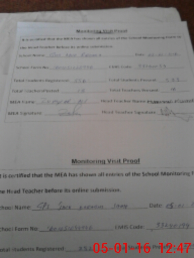 | Attendance Register | Head Teacher | MEA with School | Visit Proof |