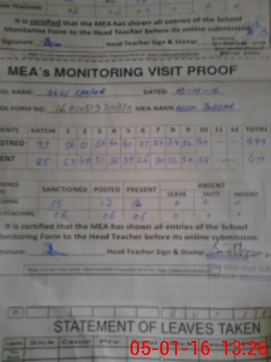 | Attendance Register | Head Teacher | MEA with School | Visit Proof |