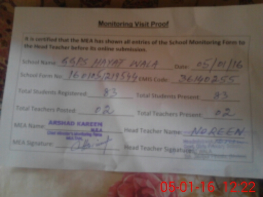 | EMIS Code: 36140255 | Name of School: GGPS HAYAT WALA | |||