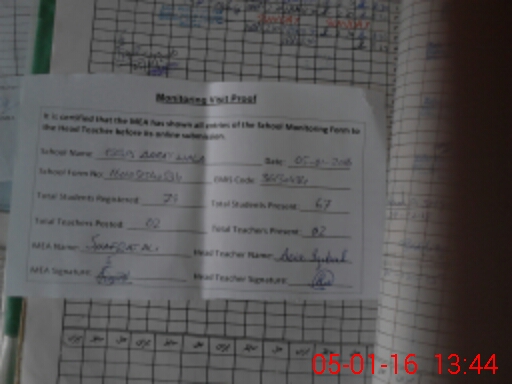 | Attendance Register | Head Teacher | MEA with School | Visit Proof |