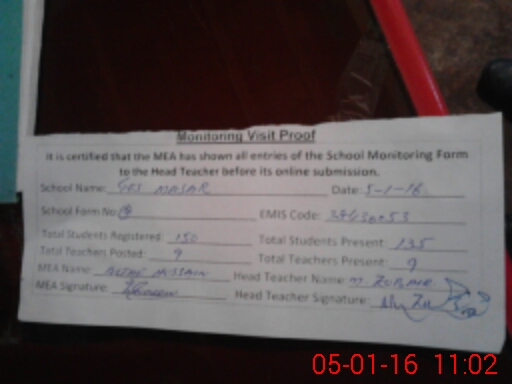 | Certified that this School was Inspected by the Undersigned MEA/DMO Today and the Information Stated Above is as Per Record. | |||||